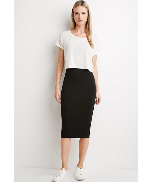 STYLE DETAILS: Forever 21 Contemporary - A classic knit pencil skirt with a midi length and elasticized waist. Fully lined 95% rayon, 5% spandex Hand wash cold Made in Vietnam SIZE DETAILS: Measured from Small 29" full length, 25" waist