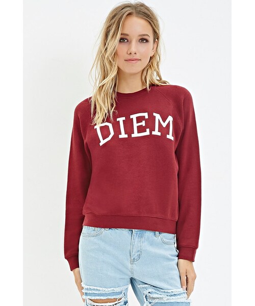 STYLE DETAILS: A sweatshirt crafted from French terry with long raglan sleeves, ribbed trim, and "Diem" printed across the front. Lightweight knit 100% cotton Machine wash cold Made in China FIT DETAILS: Measured from Small 23" full length, 42" chest, 40" waist, 23" sleeve length