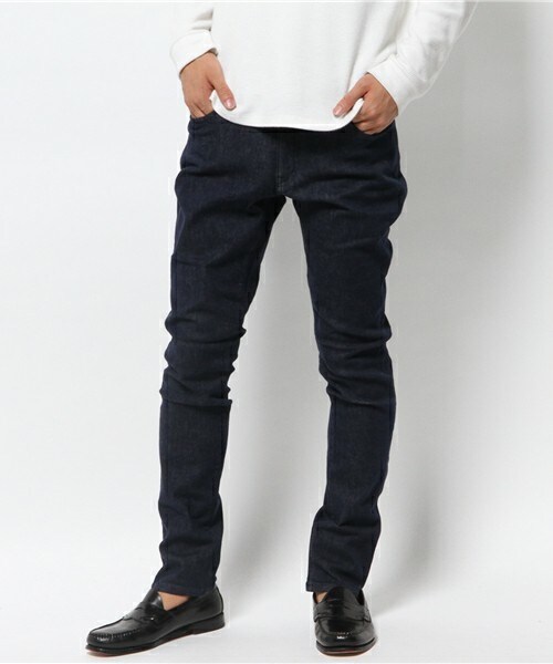 ◆FREDY&GLOSTER◆ 5ポケット型スリムパンツの秋冬バージョンです。色落ちしにくい特殊なデニム生地を用いることで秋冬の存在感あるトップスとの合わせにも負けないクリーンな存在感を発揮します。ストレッチ性のあるすっきりとしたスリムシルエットですのでデイリーユースに最適です。