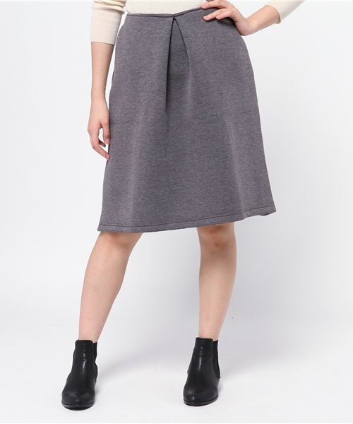 しっかりとした厚みのあるポンチ素材を使用した、フロントボックスタックミモレ丈フレアスカート。 シンプルなデザインでトップスを選ばずに色々なコーディネートが楽しめます。 ※サイドファスナー付き