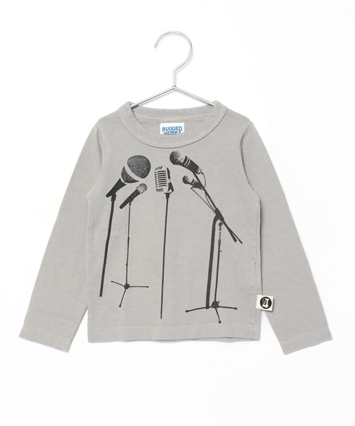 頭を通した時に、口元にマイクが集まるユニークなプリントTシャツ。 バックプリントの手描き風ミラーボールも小粋。 写真では分かりにくいですが、さりげないラメプリントも。 国内生地、国内縫製で仕立ています。