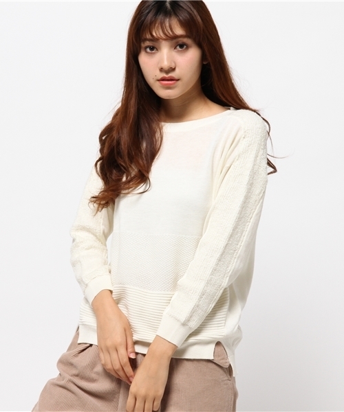 すっきりしたシルエットで、今季トレンドのワイドパンツも相性ばっちりのループ編みのシンプルニット。 身頃の編み地が切り替えてあり、シンプルコーデがぐっとお洒落な印象になります。 サイドにはスリットが入っていて、バックが長くなっており、気になるヒップラインをカバーしてくれます。