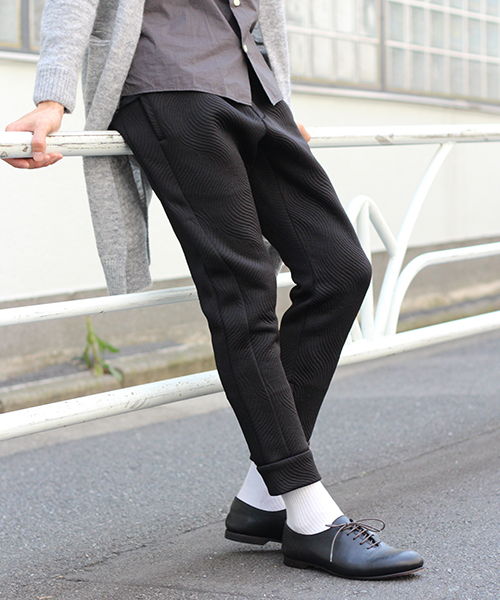 Lui's(ルイス) タイブランド「GREY HOUND」(グレイ・ハウンド)より2016AWコレクションの入荷です。 春夏シーズンお取り扱いさせていただいていた、「PLAY HOUND」(プレイ・ハウンド)のハイエンドラインの「GREY HOUND」(グレイ・ハウンド)のニューコレクション。 ベースラインのPLAY HOUNDよりも、よりモード感の強いコチラのライン。今期はパンツ、カットソー、アウター等のウェアーを中心にセレクト。 ひとつひとつが非常にデザイン性が高く、非常にお勧めのコレクションとなっております。 コチラのアイテムは、独特な素材感が特徴のポンチ素材のパンツになっております。 日々のスタイルに組み合わせるだけで、モード感を味わえるアイテムを是非お楽しみください!!
