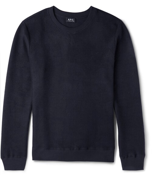 A.P.C. 's pared-back pieces form the perfect building blocks to a casual wardrobe, and this sweatshirt is versatile and timeless. Made from cotton blended with a hint of stretch, it has an incredibly soft, fleece-like handle and modern, sporty shape. Try yours with cuffed sweatpants and sneakers or chinos and loafers for a smarter take. Shown here with an A.P.C. jacket , NN.07 T-shirt and Acne Studios trousers and sneakers . Navy cotton-blend Ribbed crew neck, cuffs and hem 80% cotton, 20% polyester Machine wash
