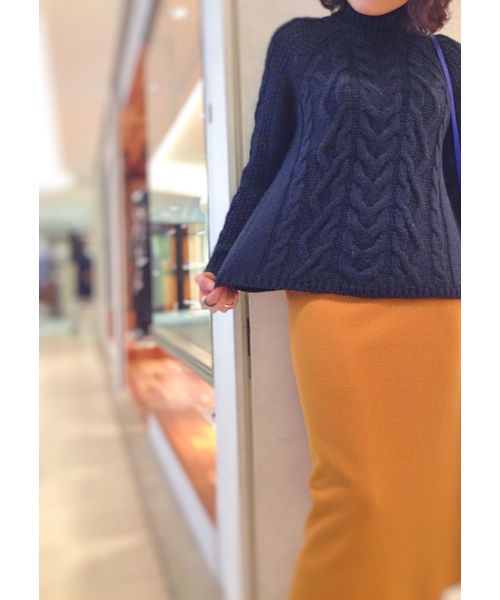 【robbem】ウォーム感のある絶妙なアラン柄がハンサムな印象を引き立てるニットは、トレンドのガウチョパンツとも好相性。ワードローブに加えておくことで、秋冬のスタイリングで大活躍するアイテムです。