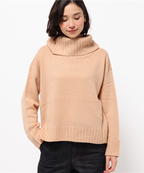 Discoat Parisien(ディスコートパリシアン) 衿ぐりがオフタートルになっている今年らしいデザイン。太さの違うリブ編みで仕上げ、表面に表情をもたせた、ワードローブに1枚は取り入れたいアイテム。サイドに入れたスリットで、着膨れせずすっきり着て頂けます。
