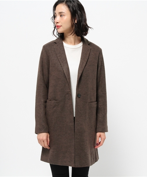 カジュアル、フェミニン、マニッシュとオールラウンドなチェスターコートは今季も注目のアウター。 起毛感のある素材を使った見た目にもあたたかな風合いです。 縦ラインを作るきれいなシルエットは、ひとつボタンでよりすっきりと羽織れるようにデザインしました。