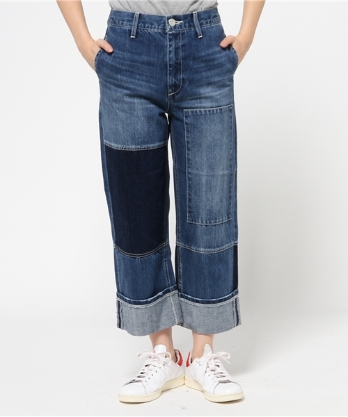 トレンドのパッチデザインを取り入れた一本。ペインターパンツのようなおおきめシルエット。足首が出るくらいしっかりロールアップした状態で履くのがオススメ。パンプス合わせはもちろん、ソックス×フラットシューズでも今年っぽさが出ます。
