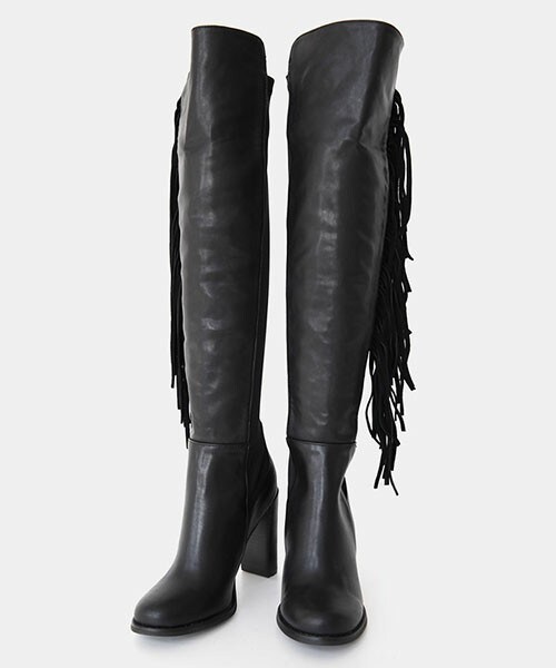 リアルレザーを使用した高級感溢れるニーハイブーツ! すっぽり膝を覆ってくれて高さのあるヒールが絶妙なシルエット★ふんだんにあしらわれたフリンジデザインがコーディネートにトレンド感をプラスしてくれます♪ Aタイプはレザー質感、Bタイプはスエード質感のデザインが2パターンございます。 ※WEARに記載してある金額と、DHOLIC通販サイトに記載してある金額にシステム都合上、稀に誤差が生じます。正しい金額はDHOLIC通販サイトに記載された金額です。