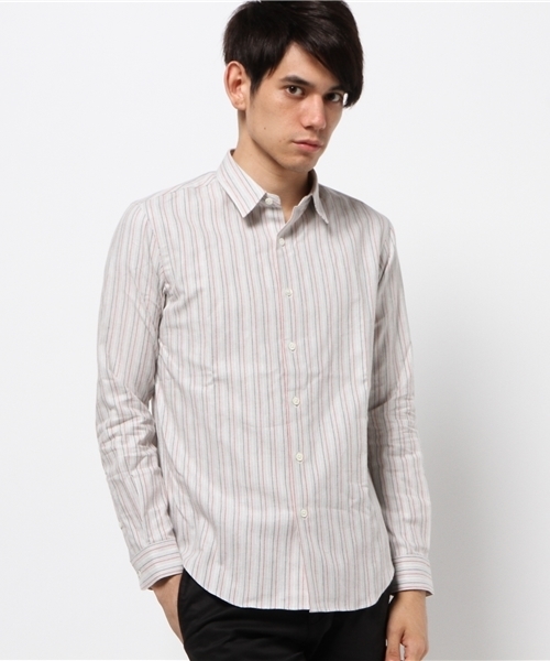 カシミヤ混素材のストライプ地シャツです。 少し太めのストライプ柄を二色配したレギュラー型になります。 風合いと共にカラーもソフトなイメージがあるので、ハッキリとしたカラーのアウターやパンツとの相性もよく合わせて頂ける1枚です。 ※取り扱いについては、商品についている品質表示でご確認ください。 ※店頭及び屋外での撮影画像は、光の当たり具合で色味が違って見える場合があります。 商品の色味はスタジオ撮影の画像をご参照ください。 着用スタッフ身長:167cm 着用サイズ:36
