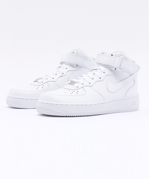大注目のNIKE エアフォースが登場しました。 NIKEの名作、エアフォース1を現代的に継承する”エアフォース1 MID 07”。ボリューム感のあるハイカットのデザインで足首をしっかりと固定し、履き心地も◎なスニーカー。コーディネートをクリーンな印象に仕上げてくれるオールホワイトは、スポーツシーンから普段使いまで幅広く活躍してくれる優れものです♪ ※生産過程に生じるキズが多少ある場合がございます。また素材の特性上、若干の色ムラ、擦れが見られる場合がございますが、予めご了承下さい。 ※薄いボール紙を使用した箱の為、輸送中に箱が多少破損する場合がございます。予めご了承お願いいたします。 ※サイズ換算(表記)はあくまで目安となります。
