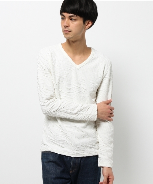 表情のあるフクレジャガード素材のロンT!プリントなどが無いベーシックデザインながら、素材感に特徴を持たせさり気ないオシャレが楽しめる一枚に!ニットカーデやアウターのインナーとして幅広く活用できますよ☆