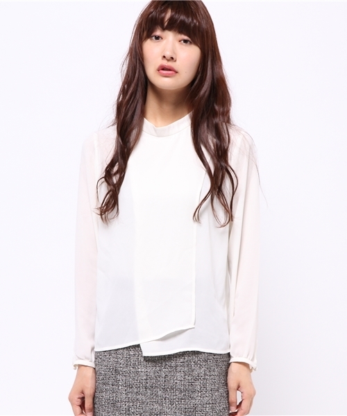 フロントにレイヤーの入った、今年らしいハイネック長袖ブラウス。 パンツでもスカートでも合わせやすい優秀アイテム。 普段使いは勿論、オケージョンでも活躍するアイテムです。