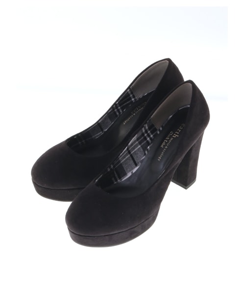 プレーンなプラットフォームパンプス。プラットフォームなので、足長効果も。中にチェック柄が隠れているのもポイントです。