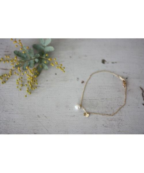 オリジナルの ちょうちょパーツを使用したブレスレット。 つややかな淡水パールと、ちいさな蝶が揺れます。 チェーンはK14GFを使用しています。 matelial 留め具含む長さ 約18.1cm 素材/ チェーン K14GF 淡水パール オリジナルBOX付き ゴールドフィールドとは 14金を圧着コーティングした素材です。 手頃な価格で、金の輝きを楽しむ事が出来ます。 メッキと異なり、お手入れをしながらの使用では変色がほぼありません。 研磨剤は使用不可となります。 空気に触れないように、密着出来るジッパー付きの袋などに保管頂くと 酸化を防ぎ、より長くきれいな輝きをお楽しみ頂けます。 サイズ/ ちょうちょチャーム大きさ 約7mm 淡水パール 白 大きさ 約5mm前後 (自然素材の為、大きさ・形がそれぞれ異なります。) ひっかけや、強い衝撃により破損する場合が御座います。 着用時にはお気をつけてご利用ください。 着用後は汗や汚れを柔らかいクロスなどで拭きとりを行います。 淡水パールは天然素材となり ひとつずつ、色、形が異なります。 また、生成時の色ムラやへこみなども入ります。 素材の特性となりますので ご理解の上、お申込み下さい。 [ご予約品] WEB限定 先行販売 この商品は受注販売となります。 発送はご入金確認日より、 5日程度を予定しています。 日本郵便レターパックライトにてお届けとなります。 (配送事故の際の保証は付随しません。 その他の配送方法ご希望の際は お支払方法 銀行振込での場合のみご変更を承ります) 発送時、追跡可能なお荷物番号のご連絡を差し上げます。 転売、画像の無断使用、転載を禁じます。 ©atelierbloom http://atelierbloom.com/