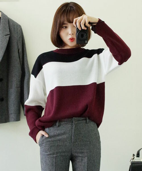配色がレトロな雰囲気を感じさせるニット。 シンプルなラウンドネックデザインなので、合わせるアイテムを選びません!カラーも合わせやすい、ブラック・ワイン・ベージュの3色展開です★ ※WEARに記載してある金額と、DHOLIC通販サイトに記載してある金額にシステム都合上、稀に誤差が生じます。正しい金額はDHOLIC通販サイトに記載された金額です。