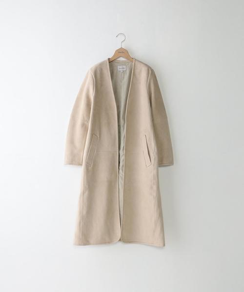 しっとりとしたゴートスウェード仕立てのロング丈ガウン。上質で柔らかな質感と、巧妙に計算されたパターンメイキング、丁寧な縫製により高いクオリティを実現しています。アウトラインはパイピング処理により、すっきりとした表情に。後ろ裾には深めのセンターベントを施し、動きやすさにも配慮しています。今シーズンらしいスウェード素材にAライン、ばさっと羽織れるガウン型とトレンドが詰まった自慢の一着を是非お見逃し無く。店舗にてお問い合わせの際は、全国のsteven alan各店舗まで下記の品番をお申し付け下さい。品名: SABY GOAT SUEDE GWN 品番:8225-199-0018
