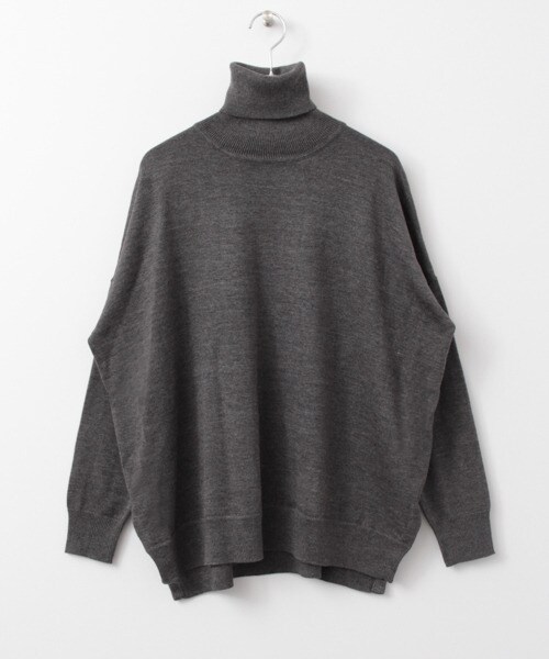 衣身剪裁寬鬆且前短後長設計的高領針織衫。寬鬆剪裁樣式,能輕鬆將下襬紮入腰間,隨意遮蓋腰部線條。身體可自由擺動的絕佳寬鬆感更能顯現出女性氣質。推出適合冬季穿著的深色系列,舒爽又偏輕薄的材質不讓人感到厚重,在需要外套的季節中,也是款非常適合作為內搭衣物的單品。