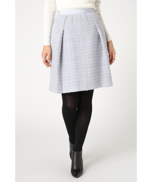 膝丈の着回ししやすいツィードスカート。ラメが入っているので、適度な華やかさも備えた一枚です。オンオフお使いいただけるので、デイリーで着回したいスカートです。ブラウス、カットソー、ニットなんでもコーディネートできるのが嬉しいですね。