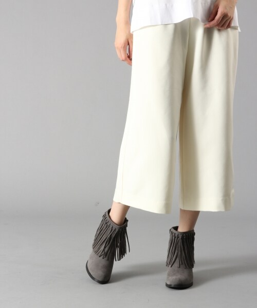 しっかりめの素材感が魅力のワイドパンツ。肌触りの良いレーヨン混素材です。ウエスト後ろ部分はゴム仕様なので、楽に着用していただけます。ホワイトのみ透け防止の裏地付き。