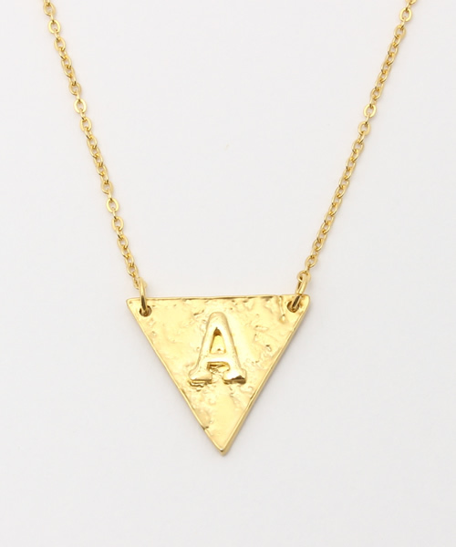 華奢なチェーンにトライアングル型のプレート。 その上に少し丸みのあるイニシャルが付いた可愛いネックレス!! 長さも2段階に調節出来て、合わせるトップスによって変えれるのもポイント。 プレゼントにもピッタリのアイテムです!!
