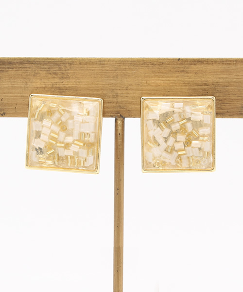 who's who Chico(フーズフーチコ) クリア樹脂の中にビーズをたくさん閉じ込めたクリスタルデザインモチーフのイヤリングです。 シンプルなフォルムながらもきらきらと煌く華やかな存在感が、幅広い着こなしにマッチします。 横顔に映える程よいボリュームとサイズ感もこだわり。 手持ちアクセサリーとのコンビ使いにもおすすめです。
