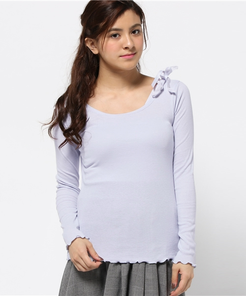 【one after another NICE CLAUP】(ワンアフターアナザーナイスクラップ) ストレッチがきいて着心地のよいロンTは、肩口にあしらったリボンがとってもキュート。色々なアイテムのインナーとしてチラ見せすれば、控えめな女性らしさをアピールできます。どんなアイテムともあわせやすい5色がラインアップされているので、お気に入りのコーデを楽しんで。 ショップへお問い合わせの際は下記品番をお伝え下さい。品番:126620592