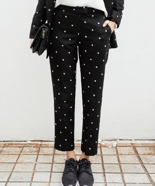 刺繍でドット柄を作ったスラックスです。ブラック地なので思っているよりも派手にはならず、合わせやすいです。 ※WEARに記載してある金額と、DHOLIC通販サイトに記載してある金額にシステム都合上、稀に誤差が生じます。正しい金額はDHOLIC通販サイトに記載された金額です。