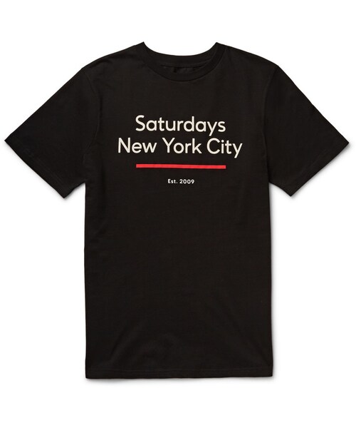 Borne from the founders' love for skate and surf culture, Saturdays Surf NYC specialises in basics with street-cool appeal. This cotton-jersey T-shirt is printed with the label's 'Standard Underline' logo in its signature sans-serif font. Wear yours under a hoodie or overshirt when the temperature dips. Shown here with a Saturdays Surf NYC jacket and sneakers and Acne Studios jeans . Black, off-white and red cotton-jersey Ribbed crew neck 100% cotton Machine wash