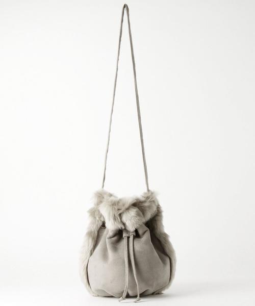 フェイクムートン巾着ショルダーバッグ☆ころんとした丸みのある巾着ショルダーバッグをフェイクムートンで提案したキュートなデザイン♪ファー部分のボリューム感とナチュラルなカラーリングが冬のお出かけスタイルのアクセントになります♪※着用、お取り扱いの際は商品についておりますアテンションタグ、洗濯ネームを必ずご確認ください。店舗にお問い合わせの際は、全国のAnother Edition店舗まで下記の品名/品番をお申し付け下さい。品名:E FK キンチャク SHLD品番:56326992045