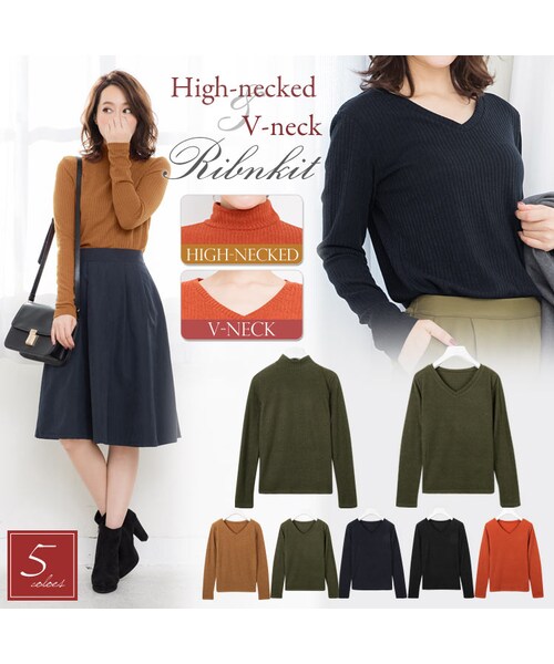 - ハイネック,Vネック