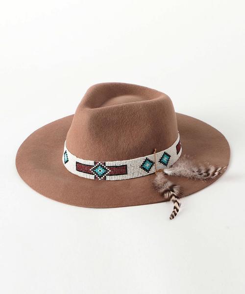 ビーズフェザー中折れハット2☆ビーズ×フェザーの装飾が、シックなカラーに映える中折れハット。ネイティブなビーズデザインが今年らしい印象で、コーディネートのポイントになってくれる事間違いなしです。ベーシックな形で合わせやすく、幅広く活躍してくれるアイテムです。★ATTENTION:ビーズ部分は手作り感の高い装飾が施されておりますので、装飾の多少のキズやムラは商品特性になりますので予めご了承下さい。★※ビーズバンドは取り外しできません。※着用、お取り扱いの際は商品についておりますアテンションタグ、洗濯ネームを必ずご確認ください。店舗にお問い合わせの際は、全国のAnother Edition店舗まで下記の品名/品番をお申し付け下さい。品名:AE Beads FT ナカオレHATⅡ品番:56386990905