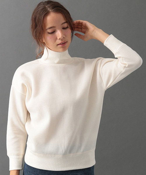 リブ部分が異素材切り替えになったタートルネックプルオーバー。裏地が起毛になっていて保温性に優れたアイテム。トレンドのタートルネックもカジュアル素材でこなれた印象のスタイリングが叶います。