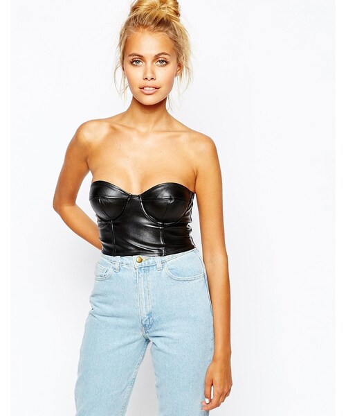 ABOUT ME Body: 60% Polyurethane, 40% Polyester. Made in the USA Faux matte leather Underwire detail Unlined design Zip back closure Close cut body-conscious fit Hand wash 60% Polyurethane, 40% Polyester Our model wears a UK S/EU S/US XS