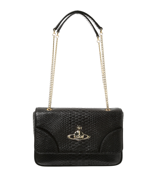 型押しされたクロコダイル柄が印象的なショルダーバッグ。 チェーンの持ち手がアクセントになっています。 【セール除外品】