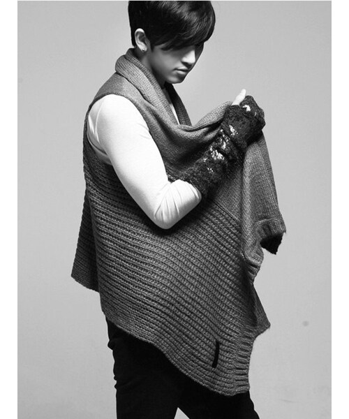 変形シルエットデザインがクールでスタイリッシュなノースリーブのニットベストです。 バックからフロントにかけて長くなるように斜めにカットされていて、ハイセンスなデザイン。 重ね着してレイヤードしてもキマります。 モードやキレイめとの相性抜群な大人なアイテムです。 サイズ・容量 【カラー】ダークグレー、ブラック【参考サイズ】 【F】肩幅42-52cm 総長45-48cm 規格 【素材】アクリル 【重さ】250g