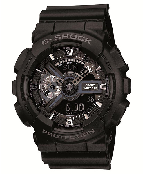 JIS1種耐磁性能時計 ブラックカラーをメインとし、ビックフェイスが特長のGA-110シリーズ。 JIS1種の耐磁性能や速度計測機能、1/1000秒ストップウオッチなど実用的な機能を搭載。 9時の位置には歯車状のインデックスが施されデザインのアクセントになっています。 クールな印象をもちながらインパクト大のこのモデルは、あらゆるシーンで活躍してくれること 間違いなしのアイテムです。 ・仕様 ■耐衝撃構造 ■20気圧防水 ■耐磁時計(JIS1種) ■樹脂バンド ■ワールドタイム:世界48都市 ■ストップウォッチ、タイマー、時刻アラーム5本 ■フルオートカレンダー ■12/24時間制表示切替 ■ELバックライト ■電池寿命:約2年 ■付属品:保証書・BOX ※商品お届けの際の納品書は、お買上日を証明する書類として保証書と共に大切に保管して下さい。 (修理などの際に必要となります。)