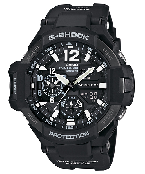 SKY COCKPITシリーズ パイロットが必要とされる様々な機能を搭載した「SKY COCKPIT」シリーズのGA-1100-1AJF。 時分針によるホームタイムに加え、12時間表示のインダイヤルでローカルタイムを確認することが できるアビエーションウオッチ。2都市の現在時刻を同時に確認することができます。 苛酷な環境下においても、必要な情報を表示する方位や温度センサーを搭載し、9時の位置には 大型ボタンを一度押すだけで60秒間の連続方位計測が可能。高輝度なLEDライトを装備しているので、 暗所な場所でも確り時刻を確認することができます。モノトーンカラーでインパクトのあるモデルは、 大切な方への贈り物としてもおすすめです。 ・仕様 ■耐衝撃構造 ■ブラックIP ■無機ガラス ■ネオブライト ■20気圧防水 ■針退避機能 ■ワールドタイム:世界48都市 ■方位計測機能 ■温度計測機能 ■ストップウォッチ、タイマー、時刻アラーム5本 ■フルオートカレンダー ■12/24時間制表示切替 ■操作音ON/OFF切替 ■LEDバックライト ■精度:平均月差±15秒 ■電池寿命:約2年 ■付属品:保証書・BOX ※商品お届けの際の納品書は、お買上日を証明する書類として保証書と共に大切に保管して下さい。 (修理などの際に必要となります。)