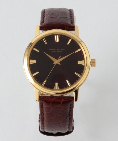 バーインデックスがクラシカルな印象の腕時計。端正なデザインは合わせるテイストを選ばず、大人らしい手元を演出できます。視認性に優れているのも魅力的。上質感のあるベルトと、ラグやバックルのゴールドカラーとの相性も抜群です。ボックス入りでギフトにも適しています。 ■こちらの時計をお買い求めの場合、電池サービスカードは付属しません。予めご了承ください。 ※商品お届けの際の納品書は、お買上日を証明する書類として保証書と共に大切に保管して下さい。(コマ詰めや、修理などの際に必要となります。)店舗にてお問い合わせの際は、全国のBEAUTY&YOUTH 各店舗まで下記の品番をお申し付け下さい。品名:BYW CLASSIC LTR BELT 品番:1443-699-1071