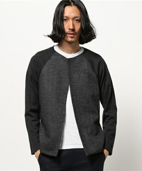 ウールジャージーのカーディガンブルゾン。前身のみウールジャージーに切替え、生地の表情と厚さを変える事でよりブルゾンライクなカーディガンです。後身と袖をカットソー地を使用する事でハイテンションで着心地良い1枚です。裾リブ仕様がより単品性を高めています。