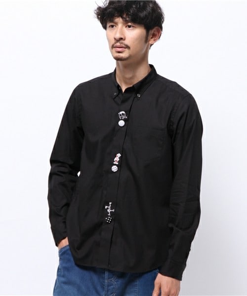 ゾウやピエロたちが愉快に躍る♪♪綿100%のシャツです。ボタンの上に玉乗りをしているイメージのなんともHAPPYなシャツ。着るだけでCIRCUS(サーカス)な気分になります。