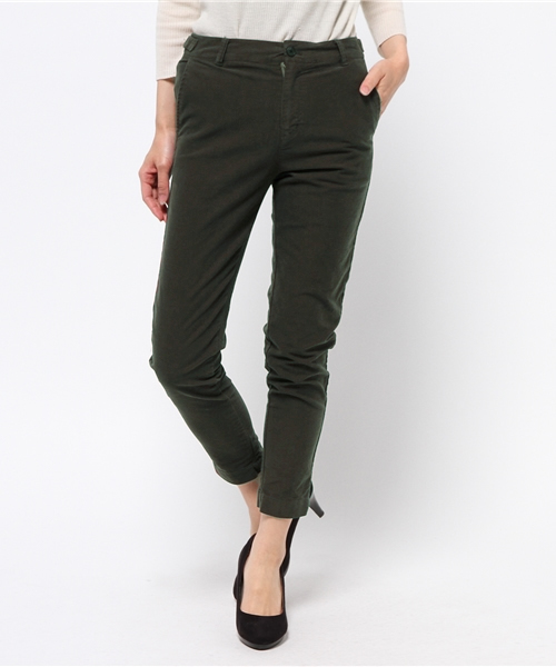 マットな風合いのモールスキン素材がウォーミーな雰囲気のパンツです。 スキニーシルエットと足首の覗くレングスが美脚を演出します。 シックで落ち着きのある色味は、どんなトップスとも相性抜群。 パーカ合わせからニットスタイルまで幅広くマッチするので、ワードローブに押さえておくと頼りになります。 ▼セールアイテム一覧はこちら