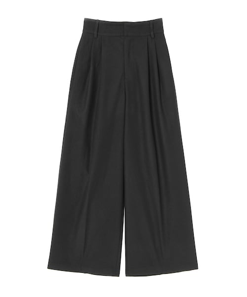 フェイクウール生地のワイドパンツです。ウエスト位置を高く設定し、幅広のベルトで目線を上に持ち上げることにより、脚長効果を期待できるアイテムです。