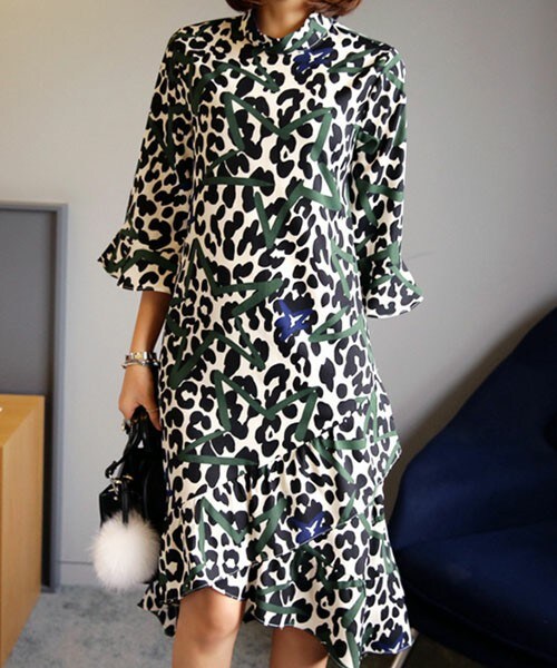 レオパード柄とざっくり手書き感のあるスター柄がユニークで印象的なワンピースです。前後でアンバランス丈でさらに女性らしいフリルがあしらわれています♡ ※WEARに記載してある金額と、DHOLIC通販サイトに記載してある金額にシステム都合上、稀に誤差が生じます。正しい金額はDHOLIC通販サイトに記載された金額です。