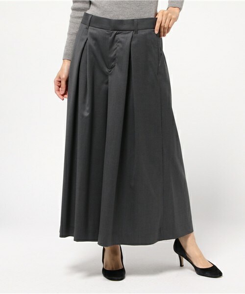 ウール混のスーツのような素材で、やわらかい落ち感が特徴のロングワイドパンツを作りました。 シックなスタイリングい役立ちます。あえて、上をカジュアルなスウェットにしてもかわいい! 裏地にはキュプラを使用しています。
