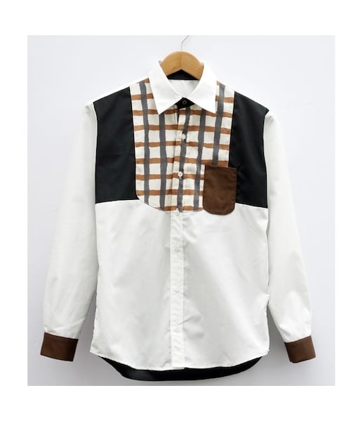◆モデルSサイズ着用 (身長:156cm) ◆モデルは、サイズMを着用 (身長:177cm 体重:63kg ) ◆サイズ XS 着丈58.5cm身幅52cm肩幅38cm袖丈55cm ◆サイズ S 着丈63.5cm身幅51cm肩幅42cm袖丈59cm ◆サイズ M 着丈63.5cm身幅53cm肩幅42cm袖丈59cm ◆サイズ L 着丈66cm身幅56cm肩幅43.5cm袖丈62cm ◆混率 ポリエステル65% 綿35% ◆ボタンは白ボタンでの仕上がりになります。 黒ボタンを希望の方は、備考欄に黒ボタン希望。と 記入をお願い致します。 【MADE IN NIPPON】 担当縫製職人:西田 圭江 (再生産の場合は、担当職人が変更になる場合がございます) ◆商品説明 胸元の独特なチェックが可愛いシャツです。 黒とブラウンをベースにシンプルかつドレッシーに仕上げたこちらの一枚は、普段着はもちろんの事、パーティー等でも活躍してくれます。胸元のチェックはジャケットを羽織った際もアクセントにあり個性を出してくれます。 生地は、シワになりにくいものを採用しており、自宅で洗濯した時もアイロン掛けずに着用が可能です。年間通して着用できる生地ですので色んなシーンでカジュアルにフォーマルにと幅広く活躍する便利な一枚です。 【※お直し、他のサイズご希望の方、SOLD OUT商品のお問合せについて※ http://nirameco.net/items/548d09fa86b188d138002f3c