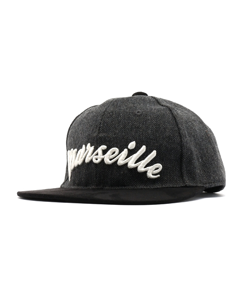 ベースボールキャップのようなスポーティなルックスに仕上がった平ツバキャップです。 立体的な刺繍を施しワンポイントに。 ツィード調の素材を使用することで季節感を出しました。