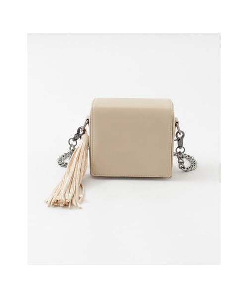 大きめのタッセルが目を惹くミニマルなバッグ。BOX型のフォルムはキレイめなコーデにマッチするのでオケージョンシーンでも活躍すること間違いなし。チェーンは取り外しが出来るのでシンプルなクラッチバッグとしても楽しめますよ。オンオフ問わずに使える優秀なアイテム。※重さ 約320g
