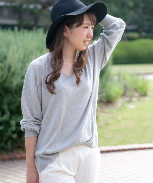 Vネックデザインのシンプルで、使いやすい、ニットプルオーバーが新登場いたしました。シルエットがゆったりめなので、パンツスタイルにも、スカートスタイルにもどんなコーディネートも楽しめます。 Vネックデザインなので、首元すっきりで、マフラーやストールあわせも楽しめるアイテムです。