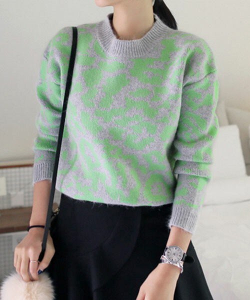 ラビットファーとアンゴラで作られた、肌触りが柔らかく暖かいニットです。グラスグリーンとピーチカラーのレオパード柄が可愛くて存在感大!コーデのポイントになりますよ★ ※WEARに記載してある金額と、DHOLIC通販サイトに記載してある金額にシステム都合上、稀に誤差が生じます。正しい金額はDHOLIC通販サイトに記載された金額です。